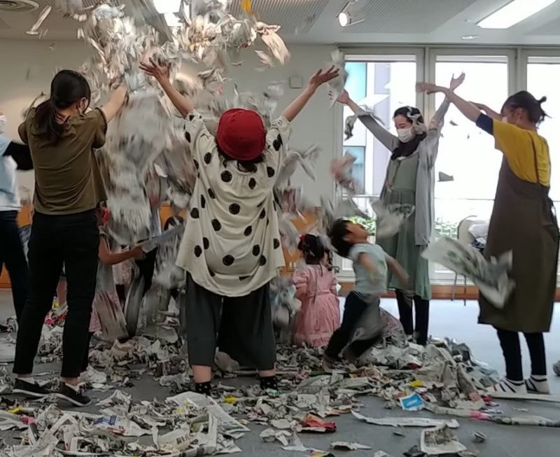 新聞紙が車のハンドルやおにぎり・ニンジンになったり、海に行ったり、もしかしたら月まで行くことになるかも?!